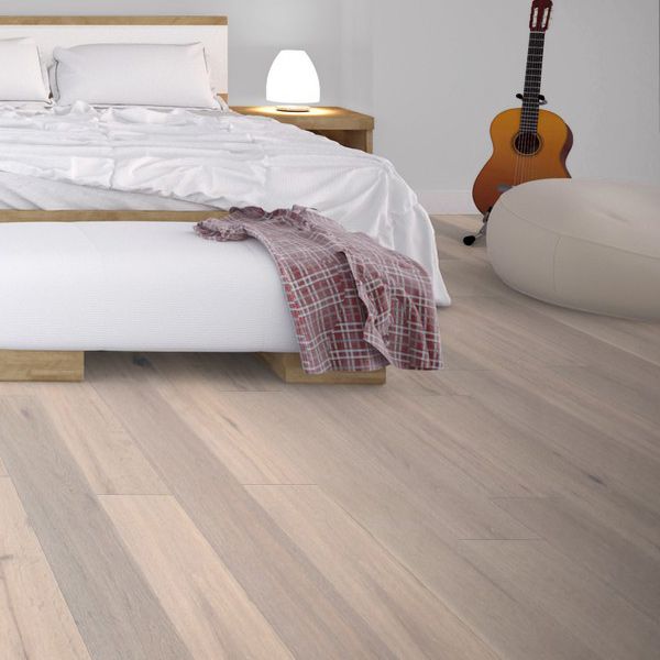 Transform your space with the crisp, modern appeal of Castle White engineered flooring. Crafted from premium oak, this multi-ply flooring is designed for strength and stability, making it a versatile choice for a variety of settings. The surface is expertly brushed to reveal the intricate grain of the wood, while the UV lacquered finish provides enhanced protection and a subtle sheen that brings out the floor’s clean, whitewashed tones.